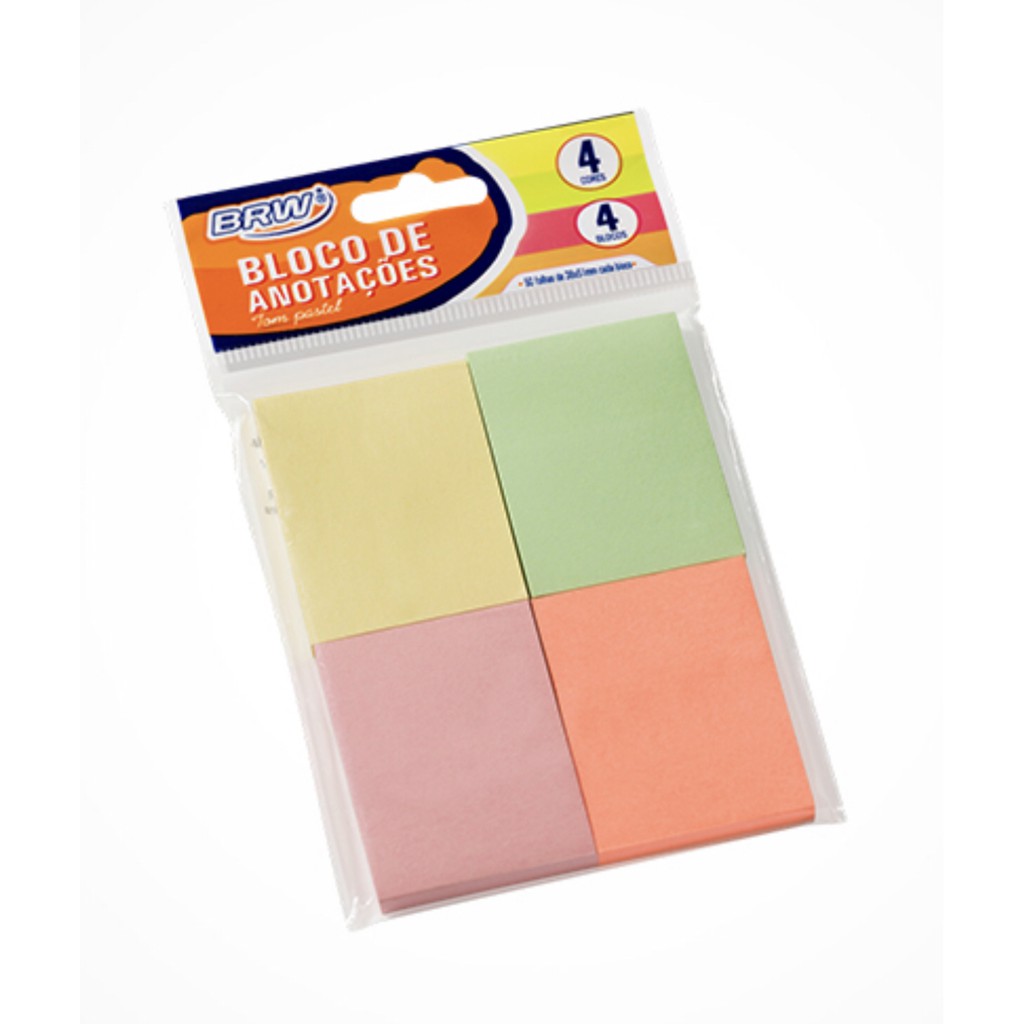 Bloco de Notas Adesivas 4 Blocos Pastel - 38mm X 51mm - 50 Folhas em cada Bloco BRW