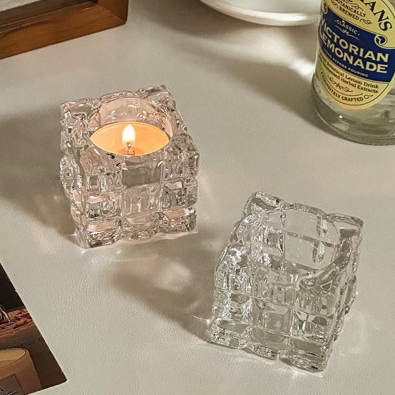Kit 2 Peças Castiçal De Vidro Quadrado Porta Velas Decoração De Luxo 5x4,8cm