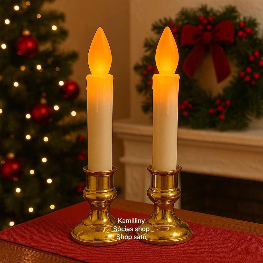 Kit 2 Velas Com Suporte Vela de Led Decoração Festas Natal Fim de ano