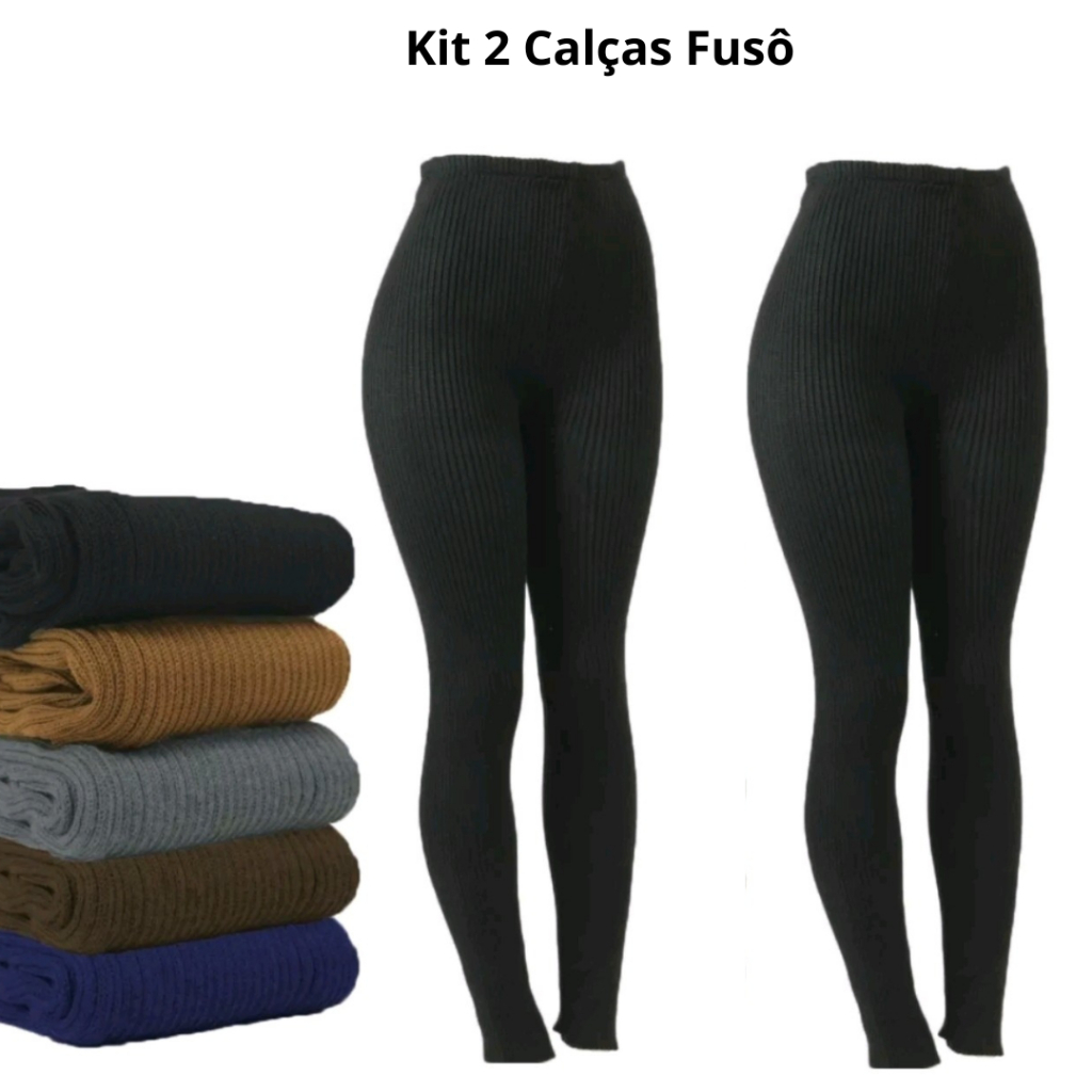 Kit 2 Calças Fusô tricô lã meia calça segunda pele
