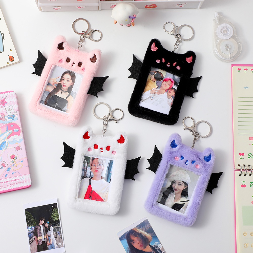 Porta-Cartões Kawaii Devil De 3 Polegadas Fotográficos Soft Plush Photo Protect Sleeves Capa De Cartão De Identificação Fofo Ônibus Caixa Protetora De Fotos