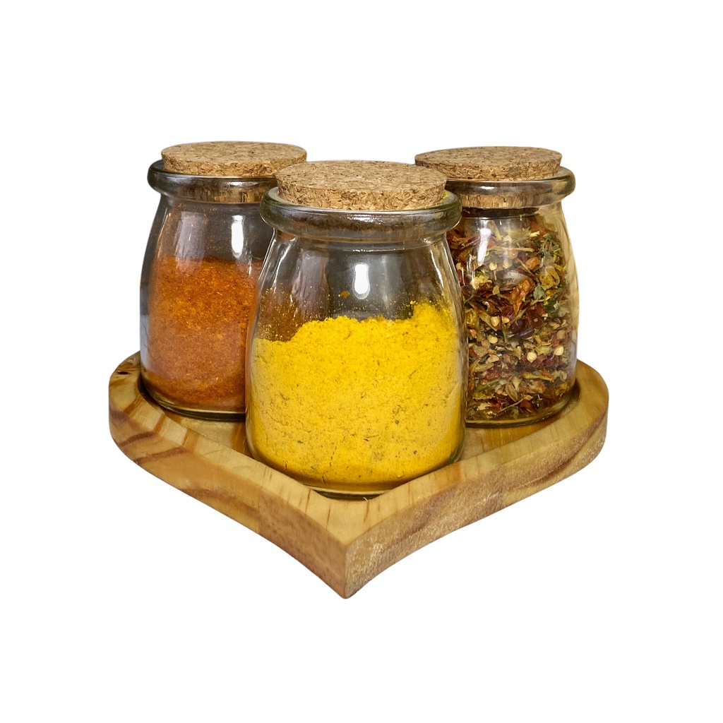 Porta Tempero - ÁGORA CORAÇÃO Acompanha 3 Potes de Vidro Leiteira de 215Ml com Rolha