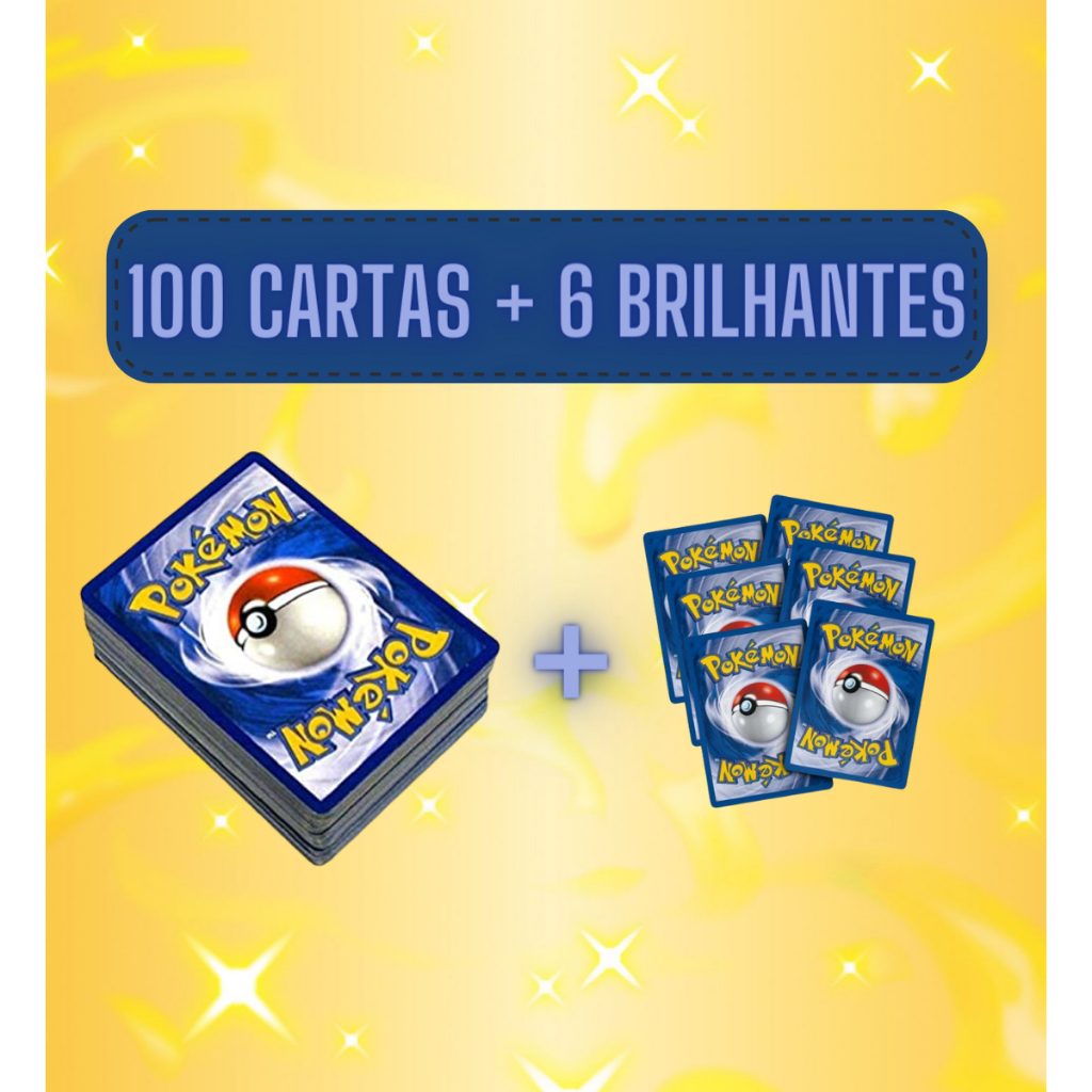 Lote Cartas Pokémon 100 +6 Brilhantes ou 50 +3 Brilhantes Cartas Sem Repetições Original Copag