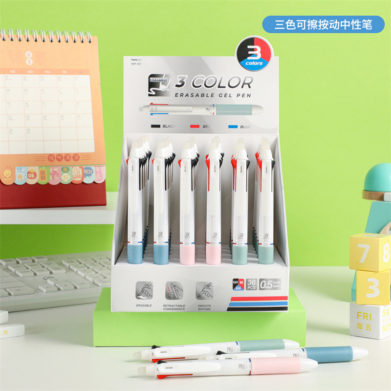 Caneta Gel Apagável de Três Cores 3 em 1 0.5 Caneta Gel Multifuncional Papelaria
