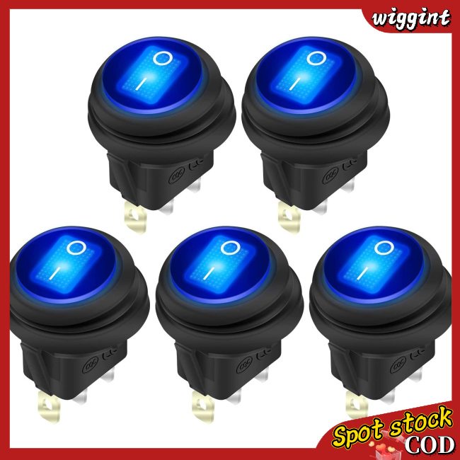 WIGG 5pcs/set Rocker Switch 3 Pinos 12v 20a Interruptor De Ligar/Desligar Com Luz Azul Led Redondo À Prova D'água