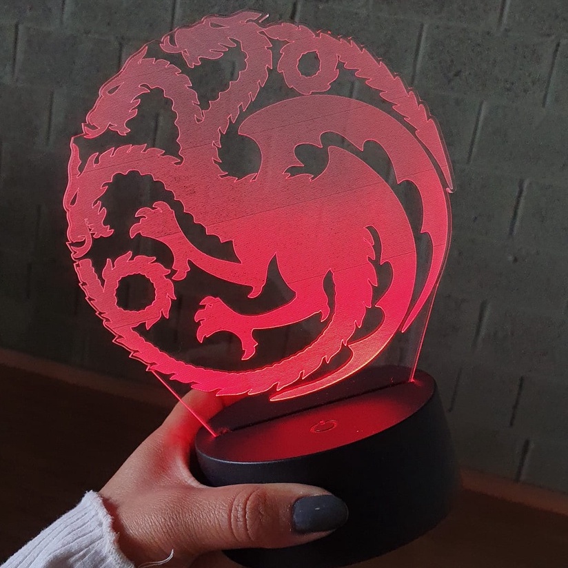 Luminária LED 3D abajur de Mesa com 7 CORES / Luz Noturna Presente Criativo / Decoração - Targaryen. House of Dragons, Game of Thrones