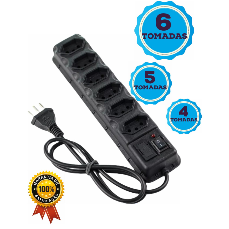 Filtro de Linha Régua 3, 4, 5 e 6 Tomadas Cabo 3 Metros e 5 Metros bivolt Com Proteção Fusível