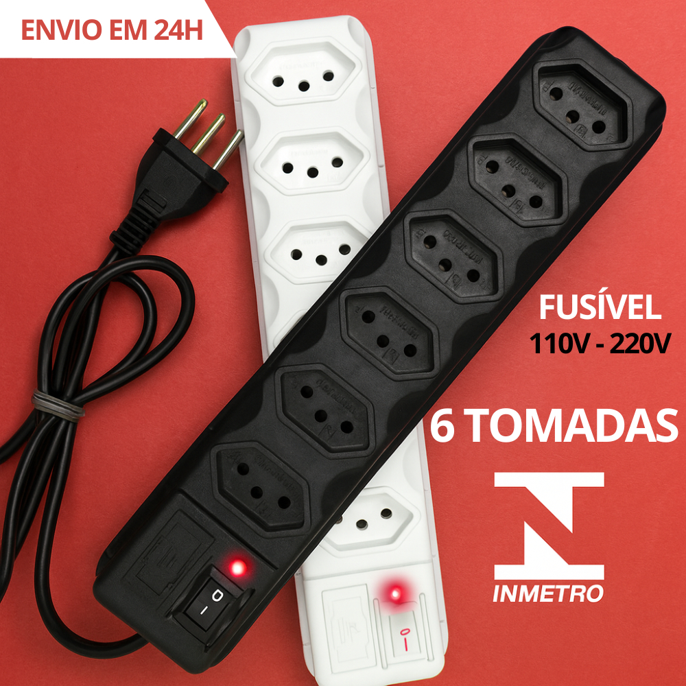 Filtro de Linha Régua de Tomadas 3, 4, 5 e 6 Tomadas Elétricas Tripolas 10 Amperes com Fusível e Interruptor 110V e 220V Melhor Qualidade