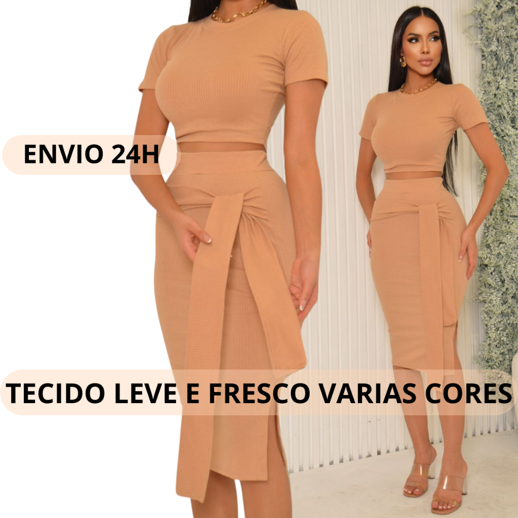 conjunto saia midi e blusa evangélica feminino faixa multiuso elegante chique malha canelada premium final de ano novo verão