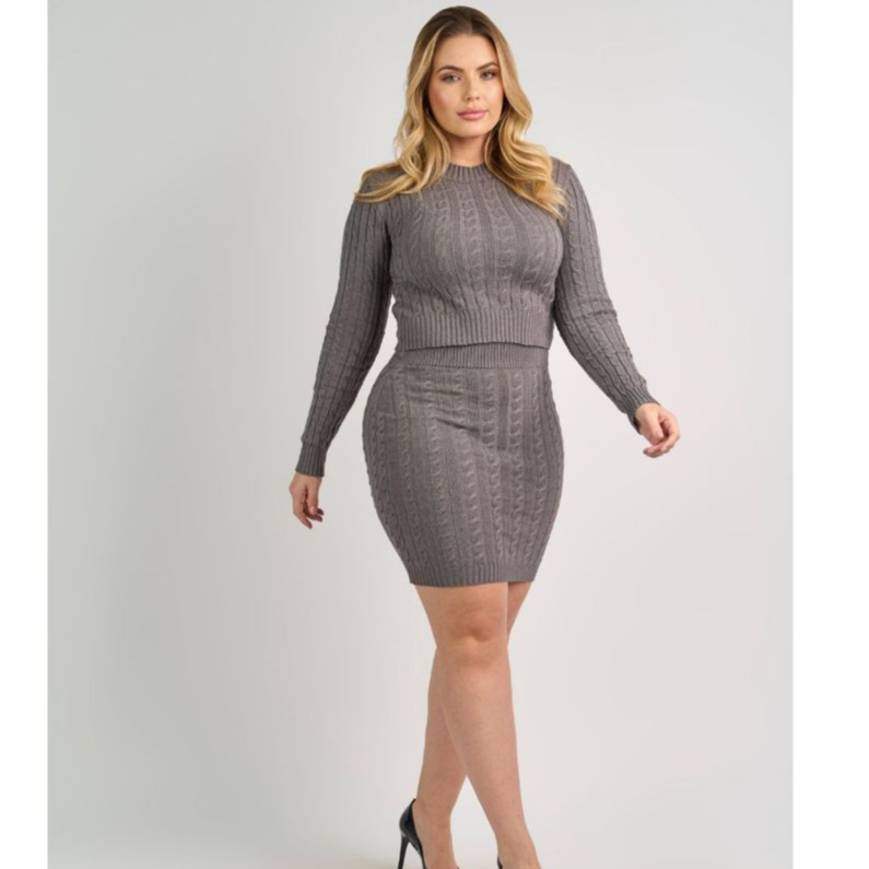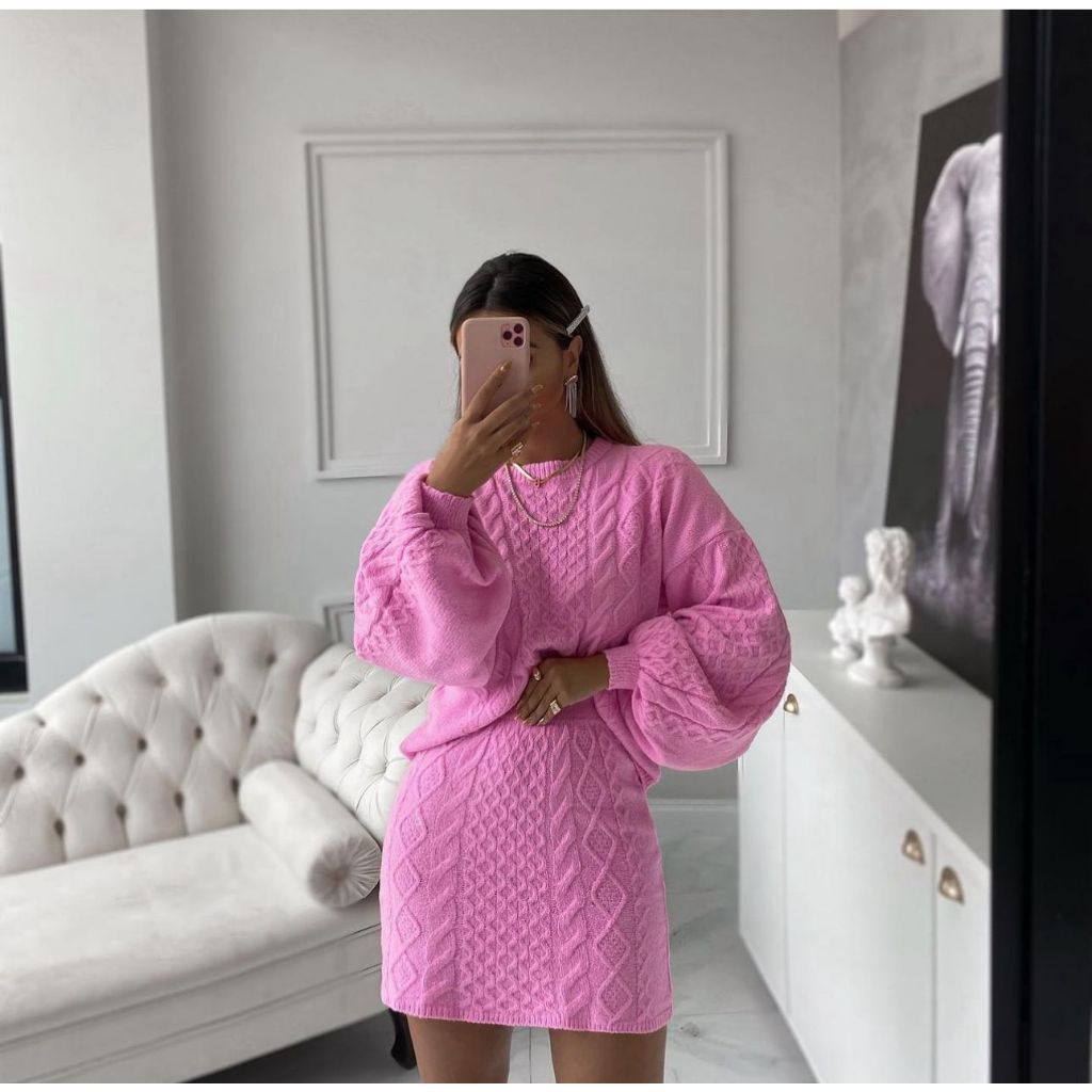 Conjunto de Frio Blusa e Saia Trança Modal Outono Inverno Lançamento Moda Trico