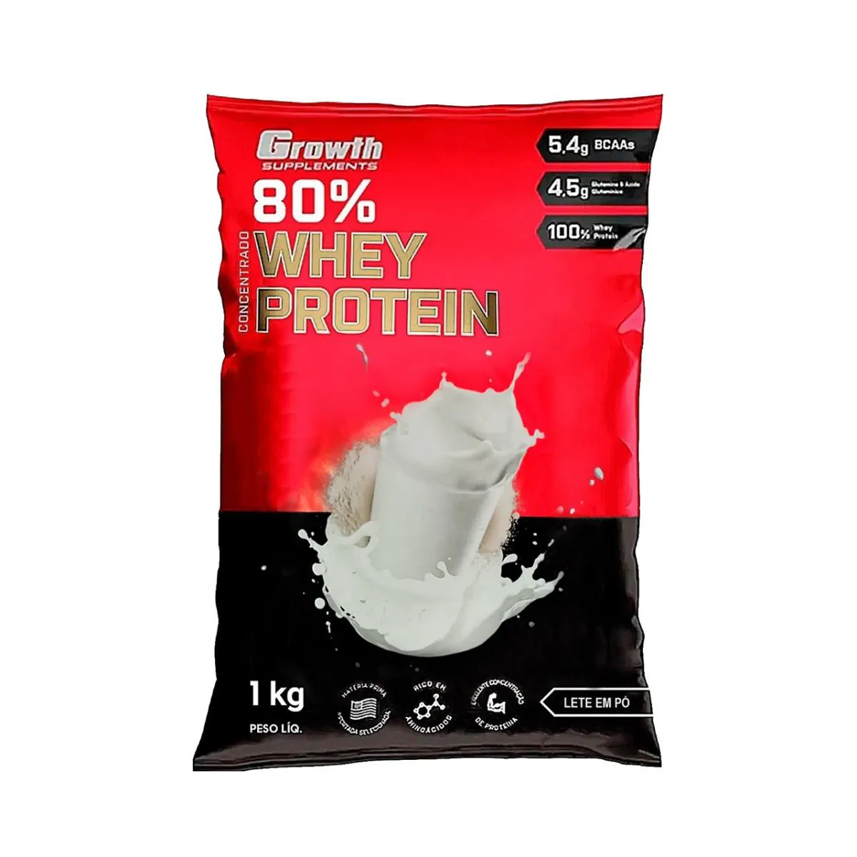 Whey Protein Leite Em Pó 80% Proteína Concentrado 1Kg Growth Suplementos Original