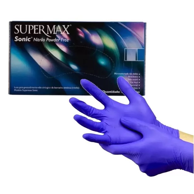 Luva Descartável Nitrílica Azul Cobalto Sonic Sem Pó C/100 Unidades Supermax