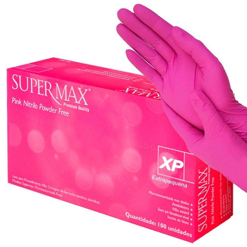 Luva Nitrilica Supermax Rosa Pink cx c/100 unid
