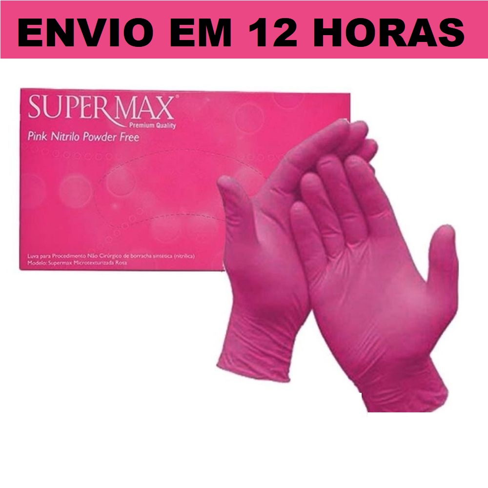 Kit 10 Luva Nitrílica Rosa Pink Sem Pó 1000 Unidades Supermax
