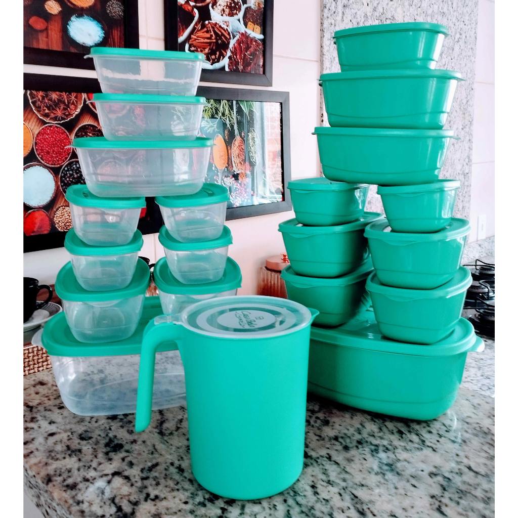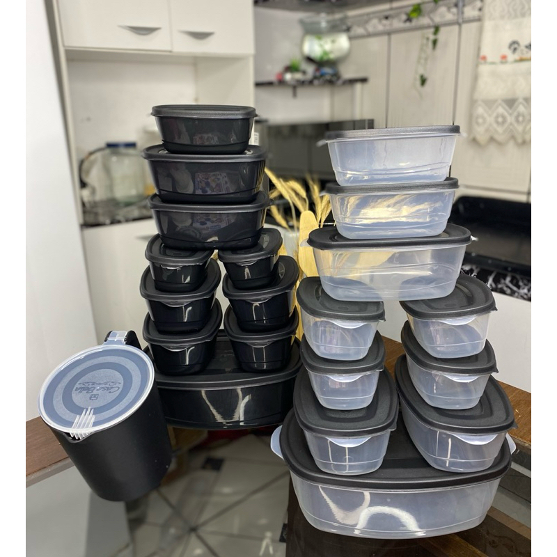 Kit Conjunto de Potes Para Alimentos 11 e 15 Peças, Vasilhas Herméticos de Plástico + Jarra com Tampa