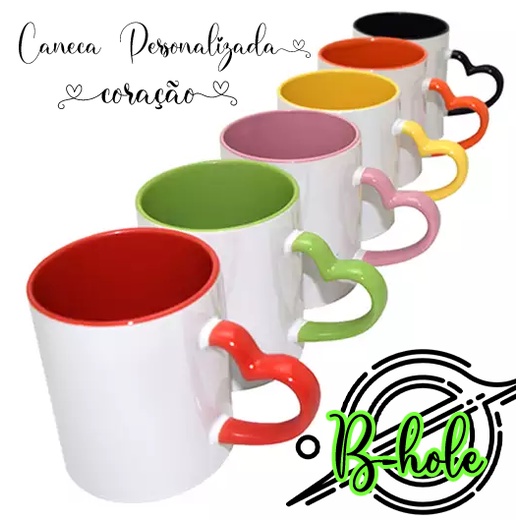 caneca personalizada colorida alça de coração