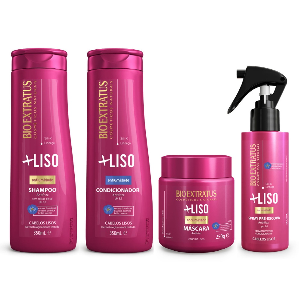 Kit +Liso Shampoo, Condicionador 350mL Máscara 250g e Finalizador Spray 100mL Bio Extratus
