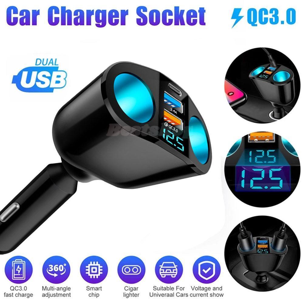 Isqueiro Para Carro Carregador De 12V-24V Adaptador De Energia Soquetes Divisores 3.1A 120W PD QC3.0 Duplo USB Carregamento Super Rápido