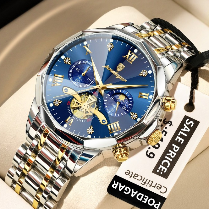 POEDAGAR Relógio De Pulso Esportivo De Luxo Para Homem Masculino À Prova D'água Data Luminosa Homens Quartzo Relógios Masculinos De Aço Inoxidável Reloj + box