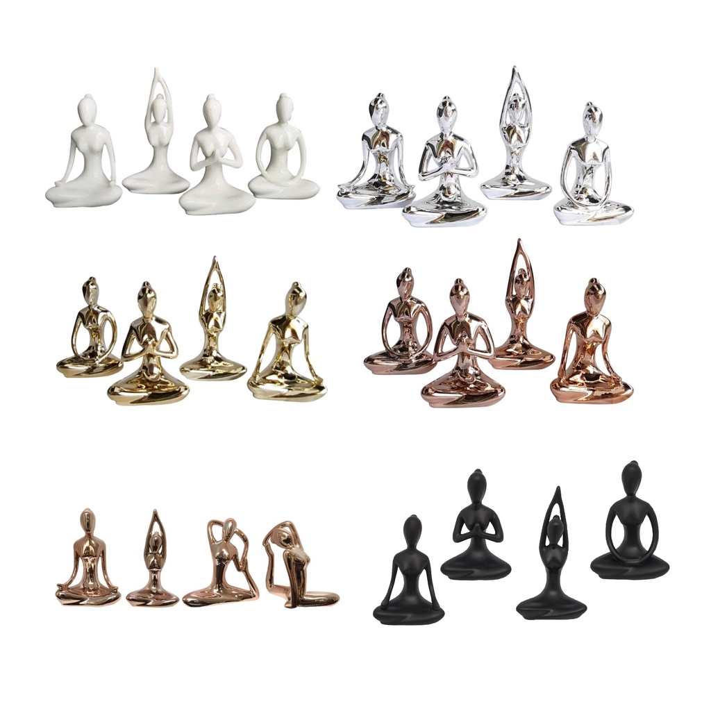 Kit Com 3 Mini Estátuas Enfeite Decorativo Meditação Posições De Yoga em Cerâmica 6cm Prata/Dourado/Rosé Gold/Preto