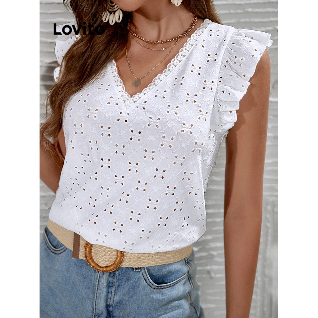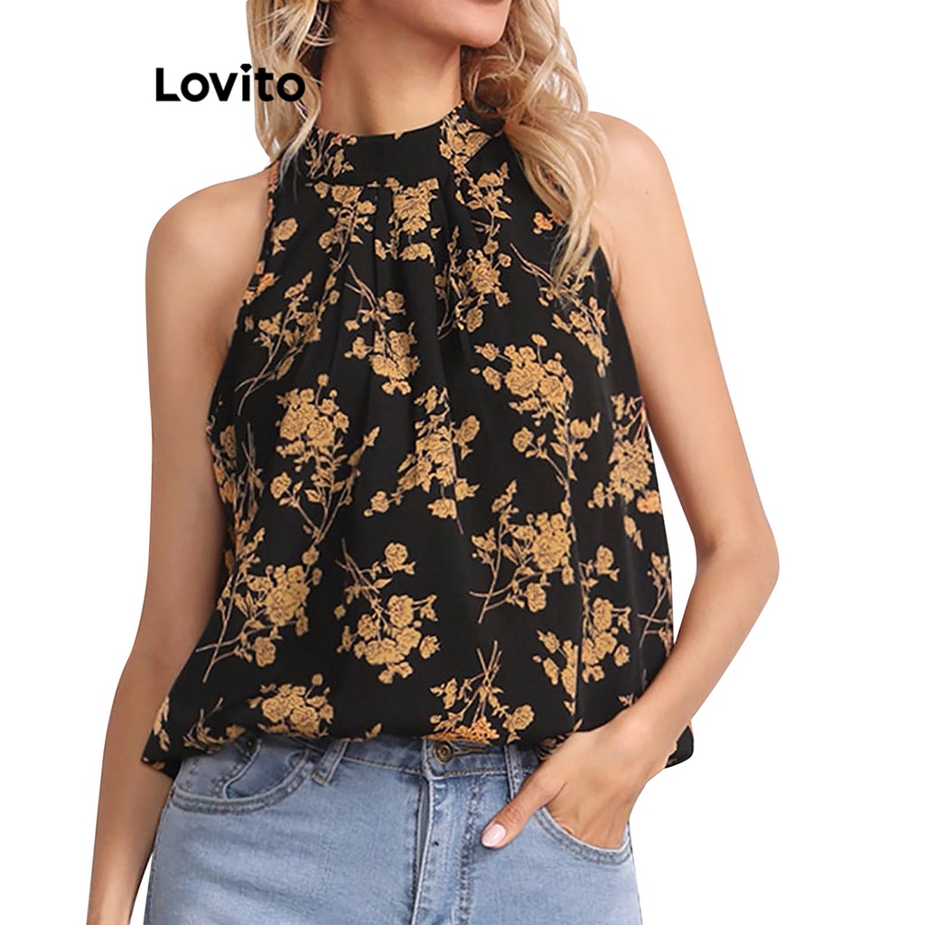 Lovito Regata Feminina Com Estampa Floral Boho Ditsy Com Babados E Gola LNL43006
