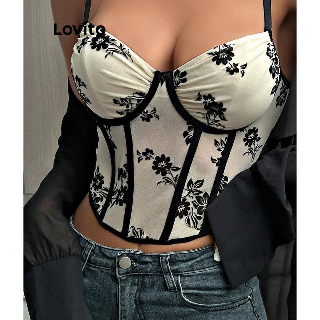 Lovito Sexy Regata Feminina Estampa Ditsy Floral com Fita Contrastante LNL40023