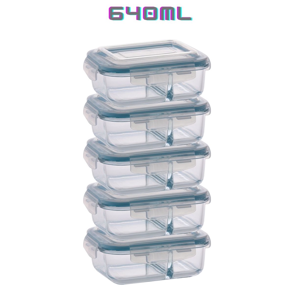 Kit 5 Potes Herméticos 640ml Com Divisória Marmita Fitness
