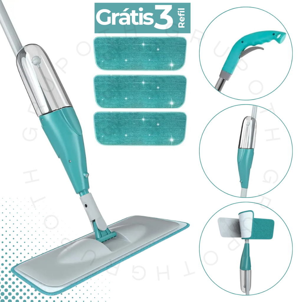 Mop Spray Giratório Mágico Vassoura Esfregão Flat Com Reservatorio Água Produto Limpeza Rodo De Limpeza Flash Fit Microfibra Refil Flash Limp Limpa Vidros Com Cabo Articulado