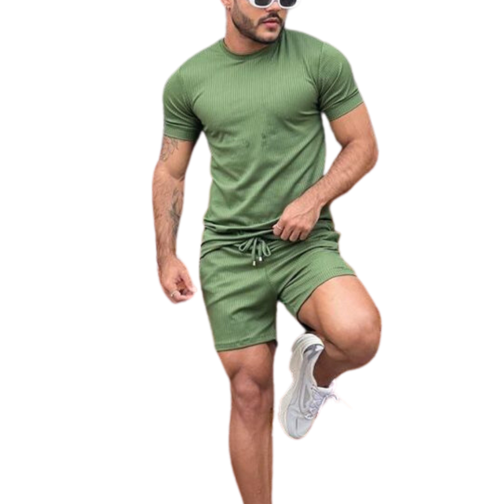 Short Bermuda Mauricinho Mais Camiseta Basica Gola Redonda Conjunto Masculino Promoção