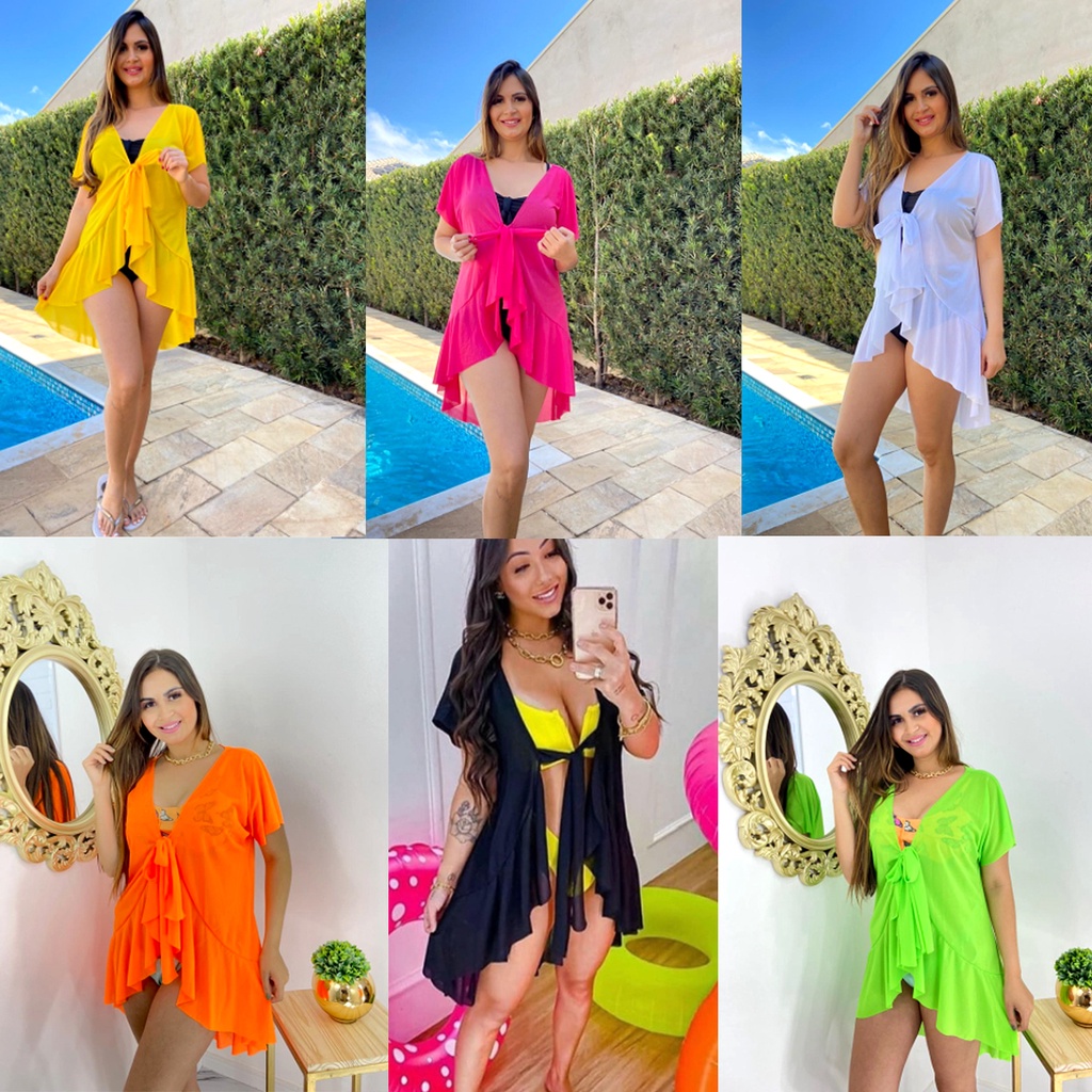 Saída de Praia pareô Feminina Plus Size Lisa com Babado Lindas Cores