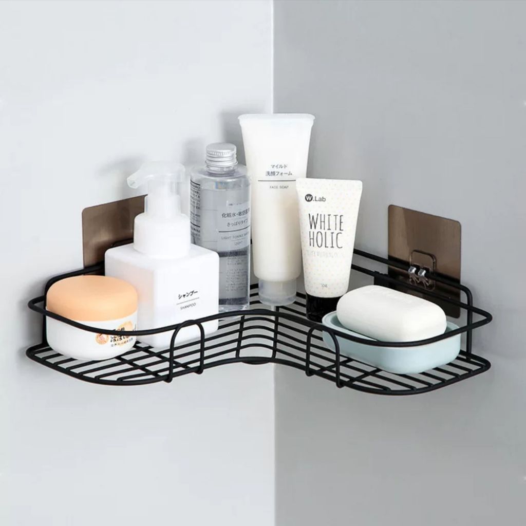 Kit com 2 Suportes De Metal Adesivo Para Parede Cozinha e Banheiro/Suporte Organizador Canto Shampoo Banheiro Preto