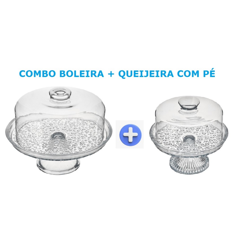 Kit conjunto Cozinha Café da Manhã Boleira Porta Bolo Queijeira Porta Queijo Redondo Pote com Tampa Porta Frios 2 Divisórias Manteigueira com Espátula em Acrílico