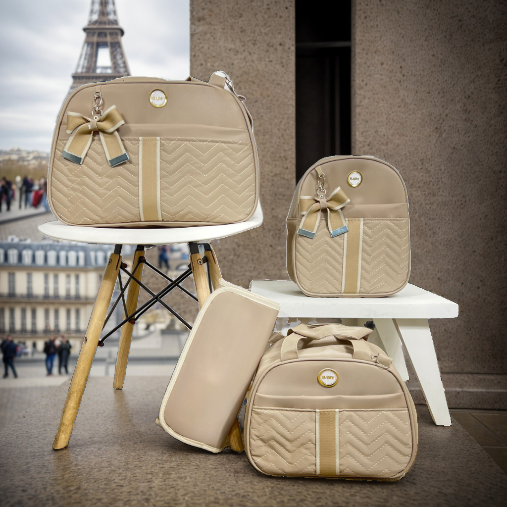 Kit Bolsa Maternidade Com Faixa e Laço 4 Peças Menina/Menino com mochila e trocador