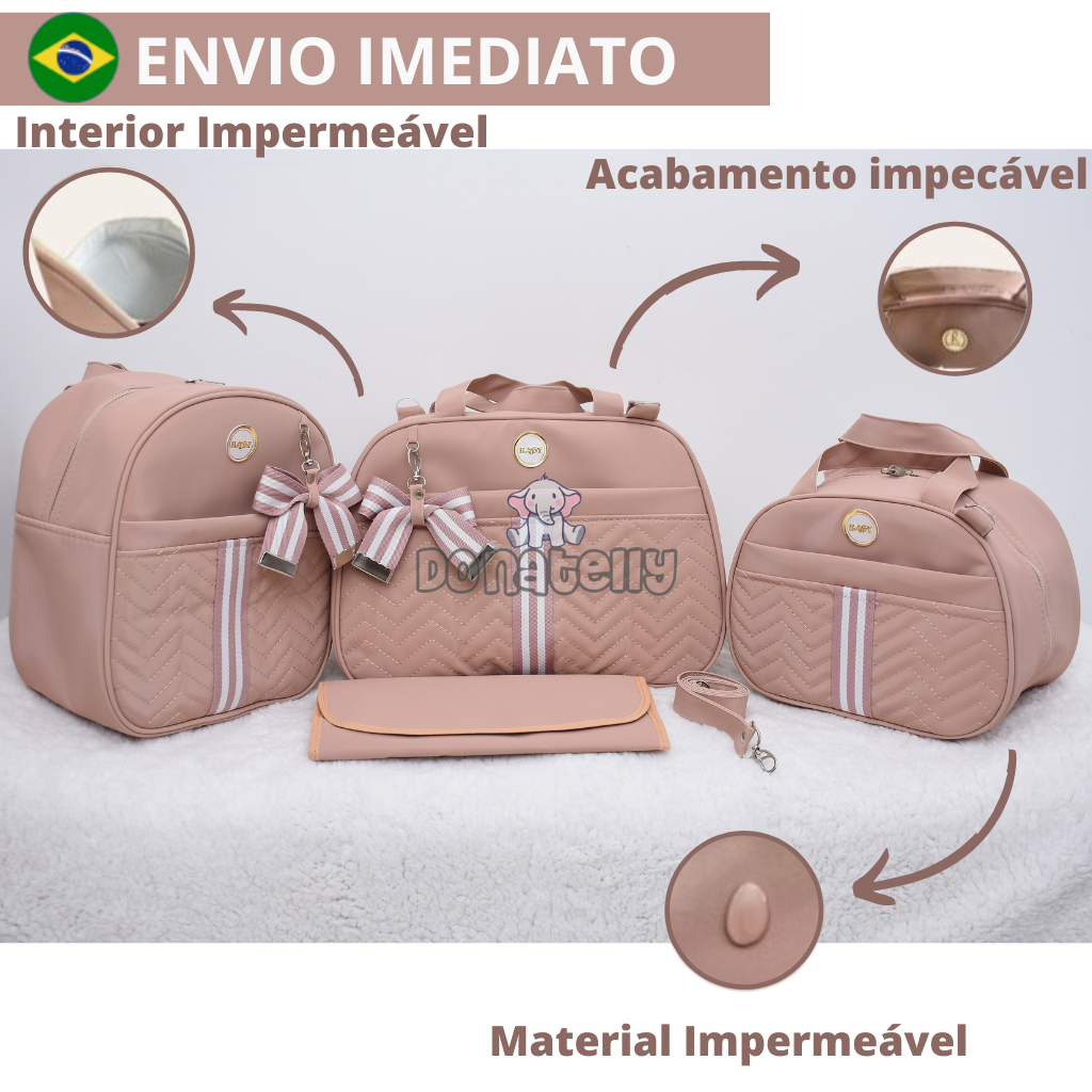 Bolsa Maternidade Exclusiva - Kit 4 peças - Térmica e Impermeável Menina/Menino - Com faixa e laço