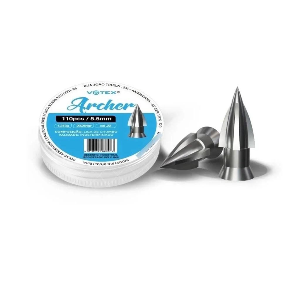 Chumbinho de Alta Precisão Archer 5.5mm - Votex / 110 unidades