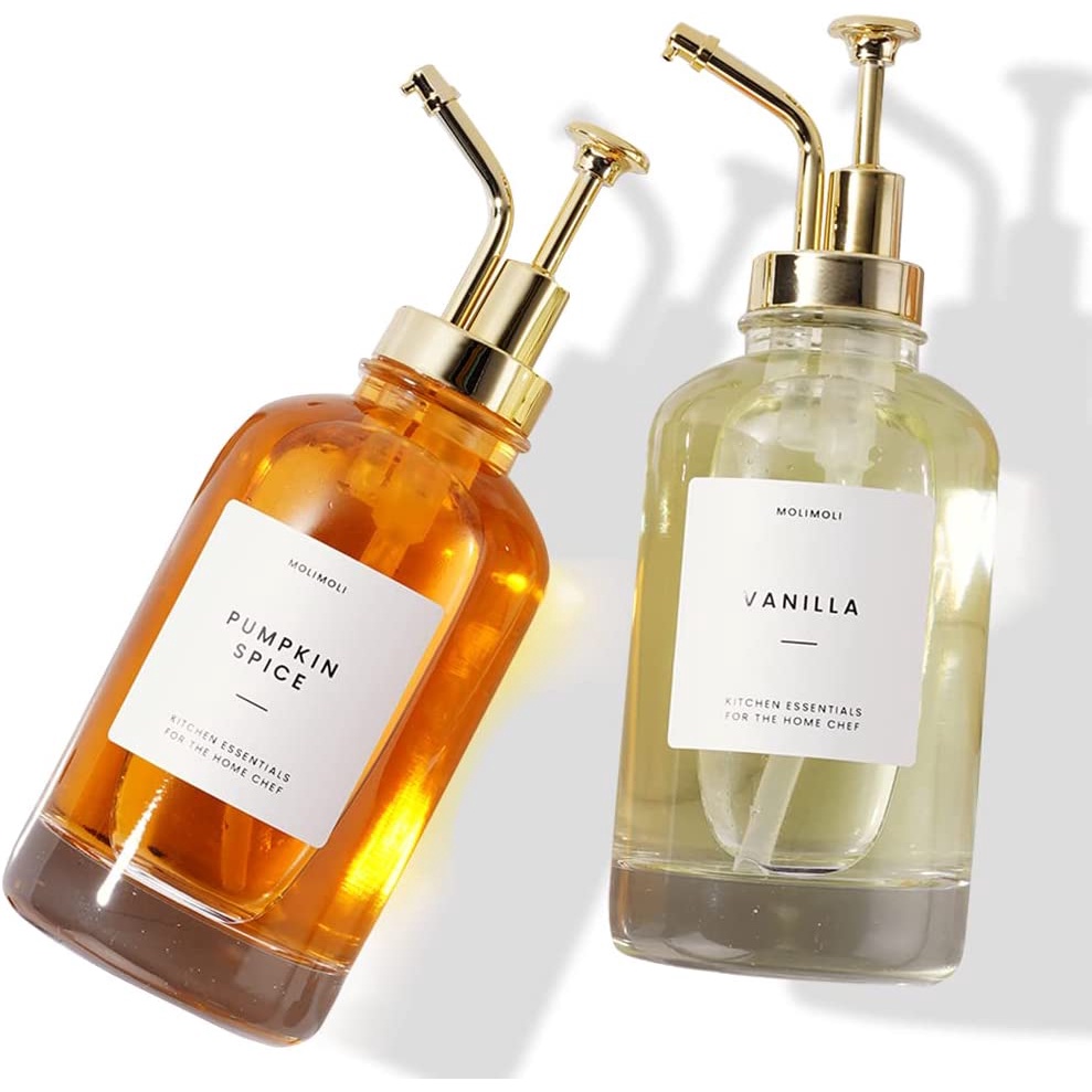 Distribuidor De Xarope De Café Para Barra , Bomba Garrafa Vidro C . Bombas E Etiquetas , 16,9 oz 500 ml , Conjunto De 2 , Ouro