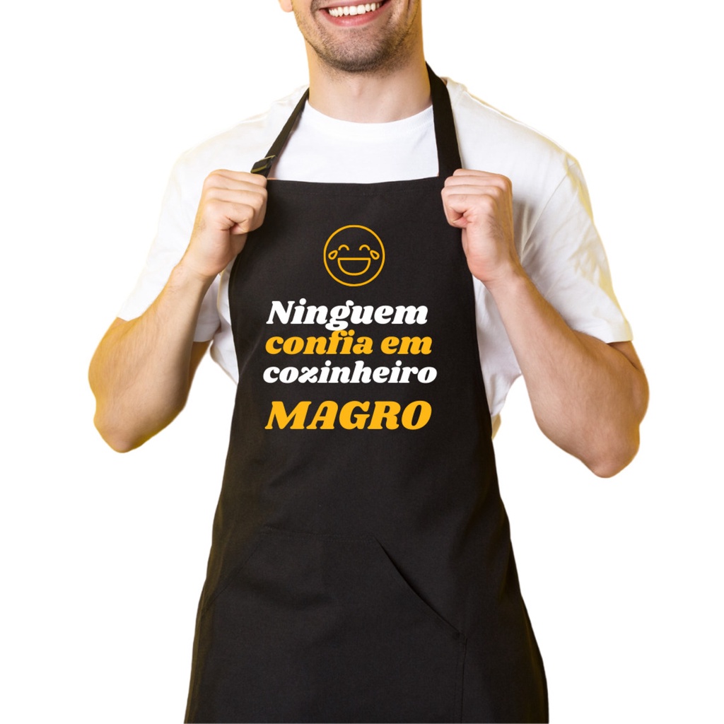 Avental De Cozinha Churrasqueiro Preto Cozinheiro Magro