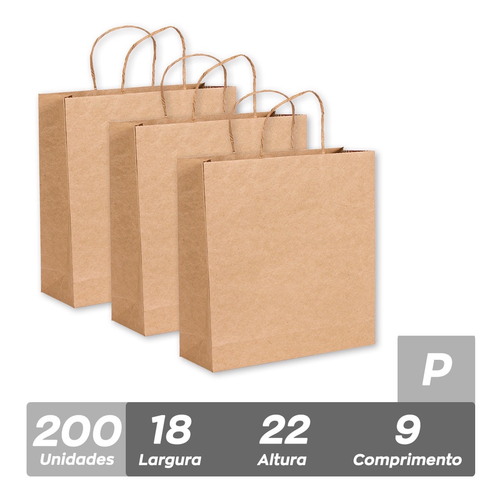 Sacola De Papel P 18x22x9cm 200und Kraft Monolúcido Com Alça Torcida Embalagem Fácil