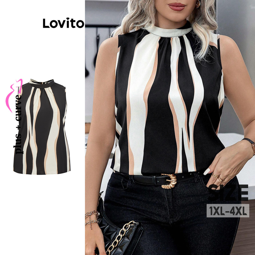 Lovito Blusa básica listrada elegante plus size curva para mulheres LBL15256
