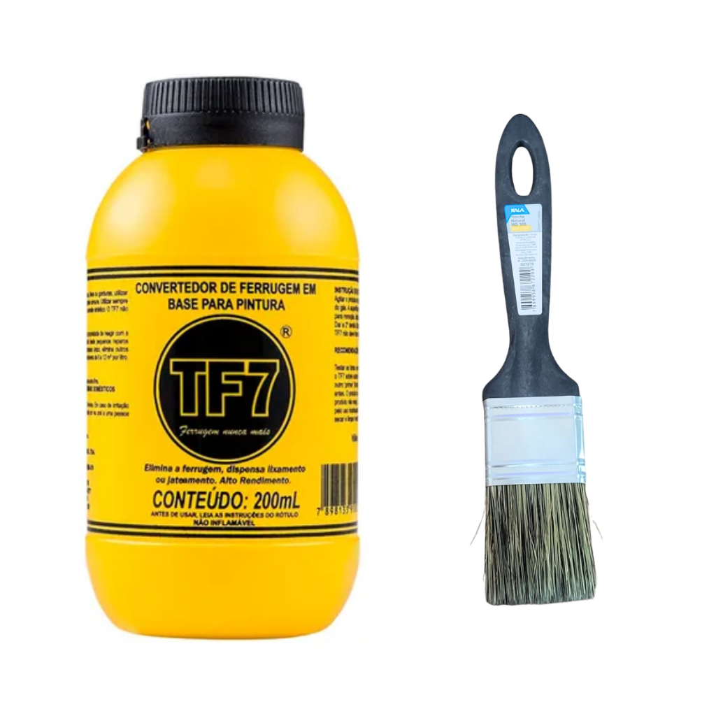 Kit Fundo Convertedor de Ferrugem Primer Base Pintura Tf7 200ml + Pincel