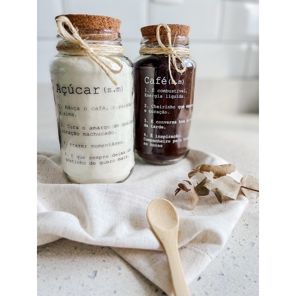2 Potes 800 grs | Pote de vidro com tampa de rolha mantimento | Cantinho do Café | Pote Café e Açúcar
