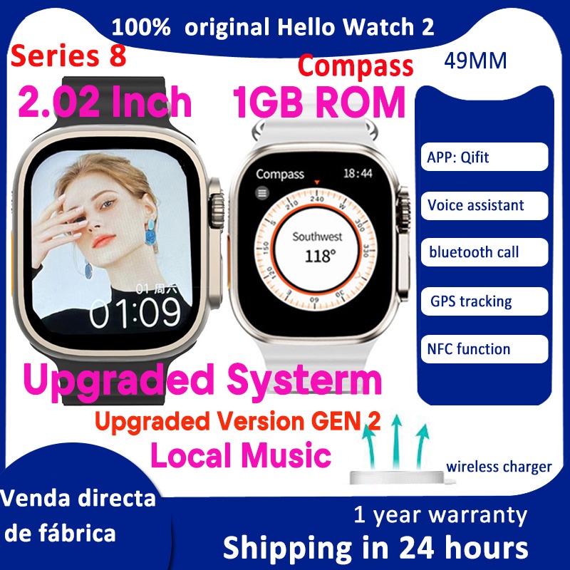 Hello Watch 2 Men Smart H11 Ultra Upgrade 2.02 Inch NFC Compass 2023 Smartwatch Com Música Local De 1GB ROM Para Android 49mm