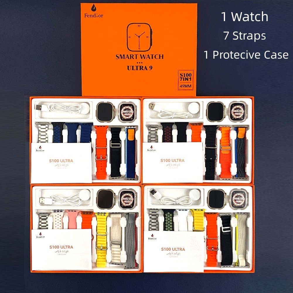 【 Local Envio 】 S100 Ultra 9 Novo Smartwatch Relógio Inteligente 7 Em 1 Alças 49mm Tela De Toque Completo Esportivo Reloj Com Estojo Protetor