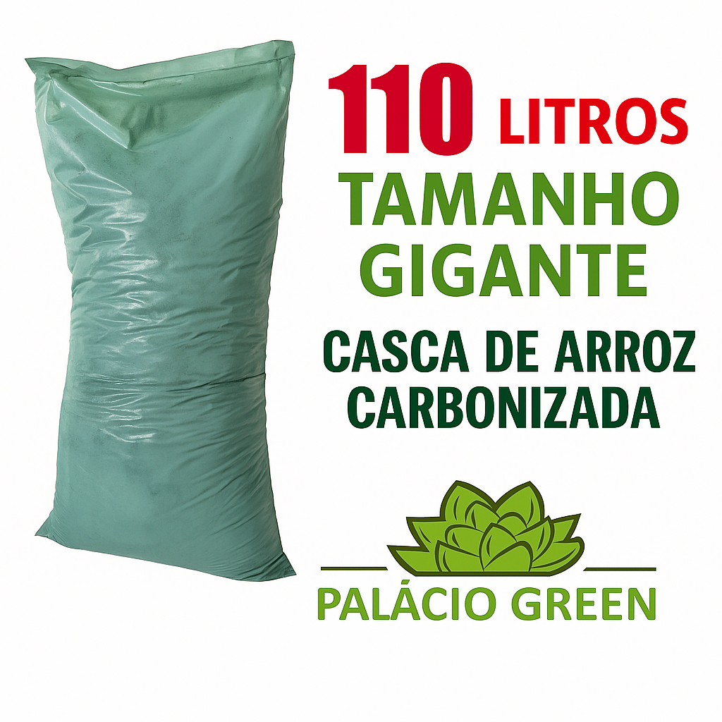 Casca de Arroz Carbonizada Substrato 110L Drenante Palácio Green para Orquídeas, Cactos, Suculentas, Rosa do Deserto