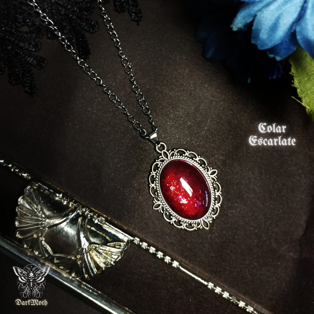 Colar camafeu vermelho gótico vitoriano corrente aço inoxidavel vintage pedra oval vermelha gotica alternativo dark rock
