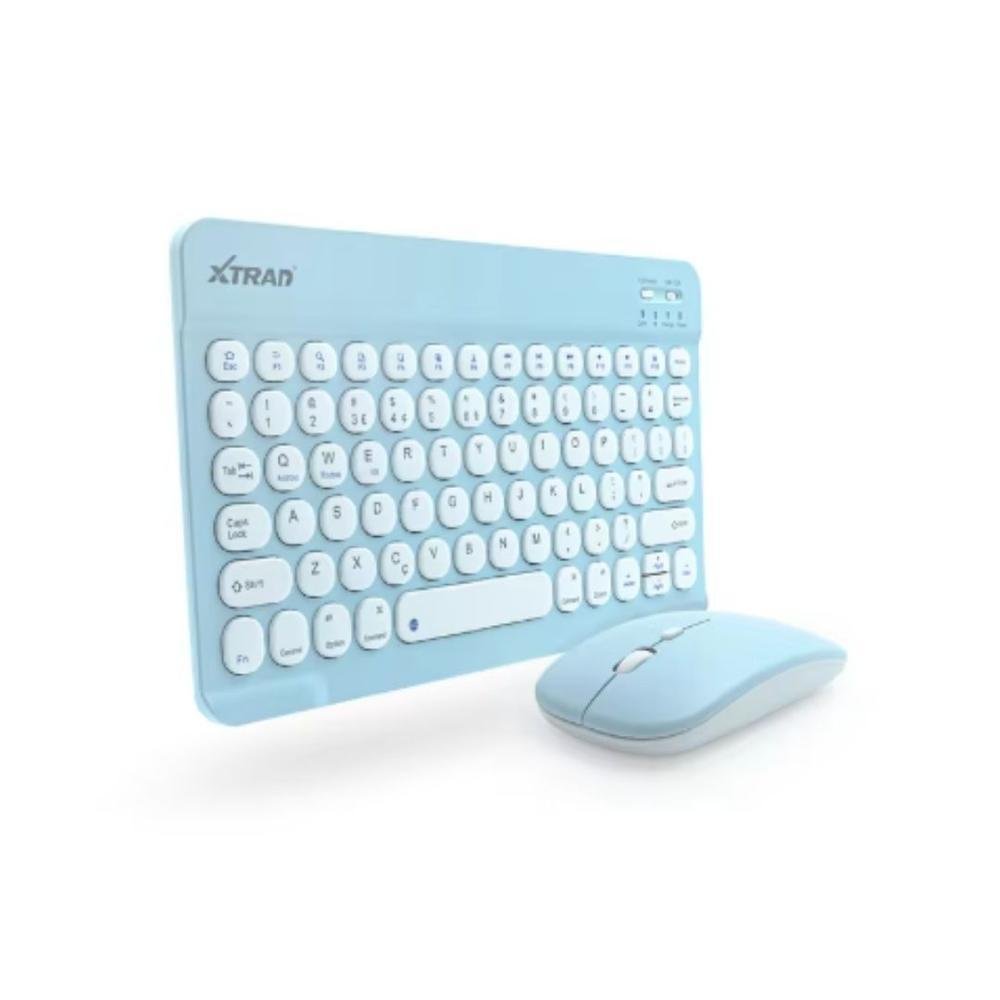 Teclado E Mouse Kit Bluetooth Sem Fio Ultra Fino Hk8880 Azul Xtrad