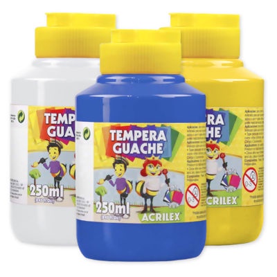 Tinta Guache Acrilex 250ml Ref.02025 pintura a pincel, papel cartão, gesso, madeira, cerâmica, cartolina