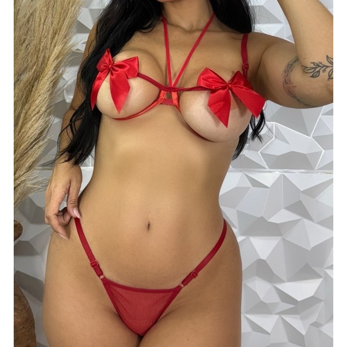 Conjunto Lingerie Aro Laço Sexy Sem Bojo Com Calcinha fio dental tule e alças laterais reguláveis, sexy, linda, intimo