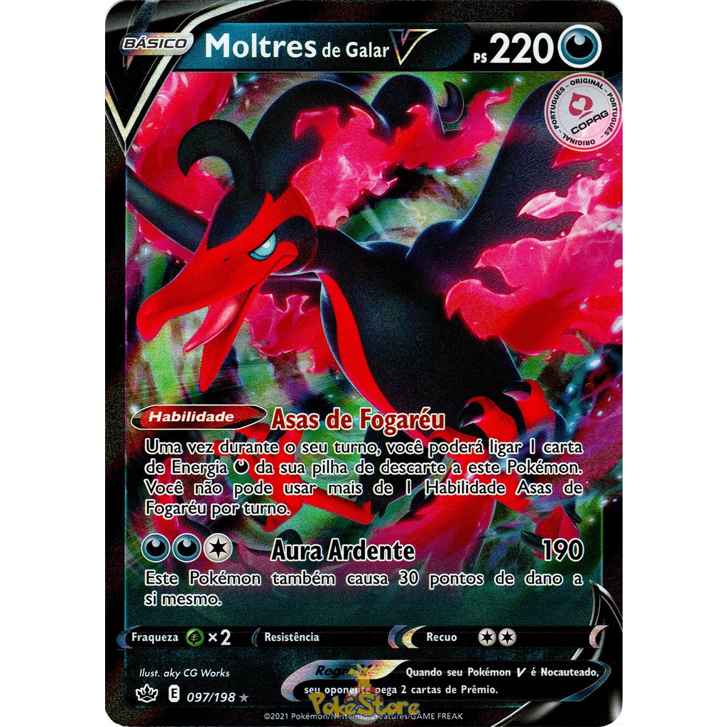 Carta Pokemon Moltres de Galar V Português 097/198 Card Original Copag Reinado Arrepiante