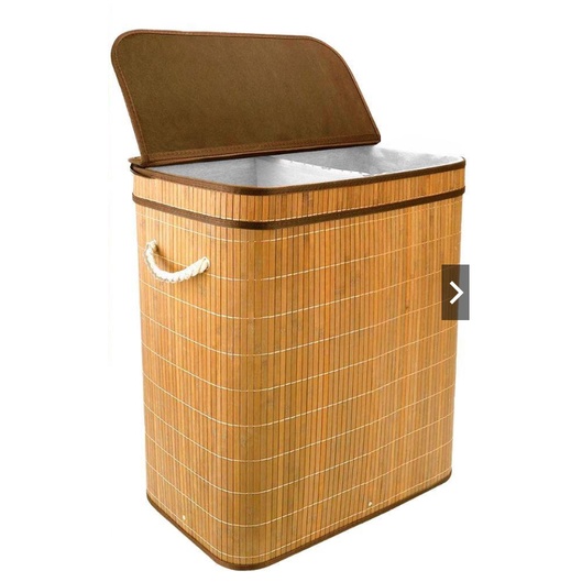 Cesto de Roupa Suja Bambu Duplo Com Tampa Cesto Grande Organizador Multiuso 60cm Cesto Retangular Forrado com Alça Brinquedo Quarto Banheiro Dobrável